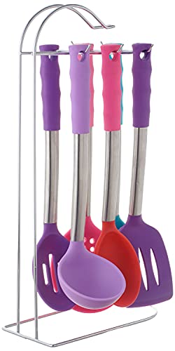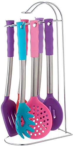 Qasem - Silicone Cooking Utensils with Stainless Steel Handle Set, 20 x 11 x 38 cm, 6 Pieces - Multi Color