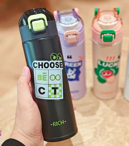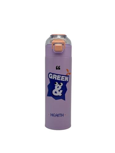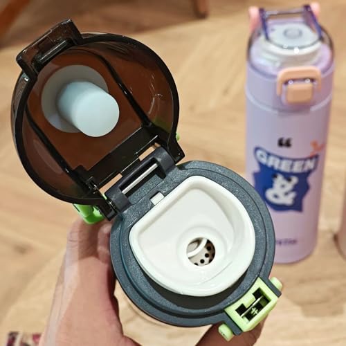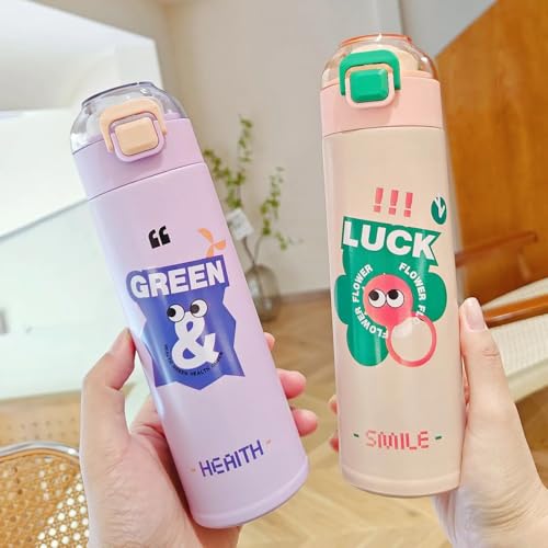 Qshop - زمزمية حرارية مع غطاء محكم بزر فتح/ غلق للمشروبات الساخنة والباردة من كيو شوب - تصميم أنيق جذاب مثالي بتصميم كرتوني حديث، 500 مل (بنفسجي)، ستانلس ستيل