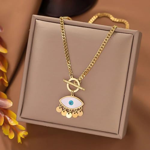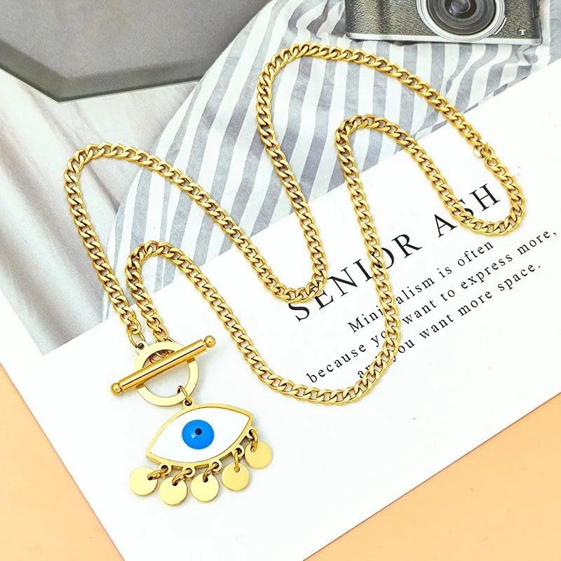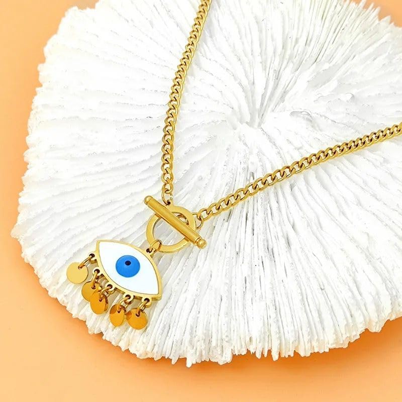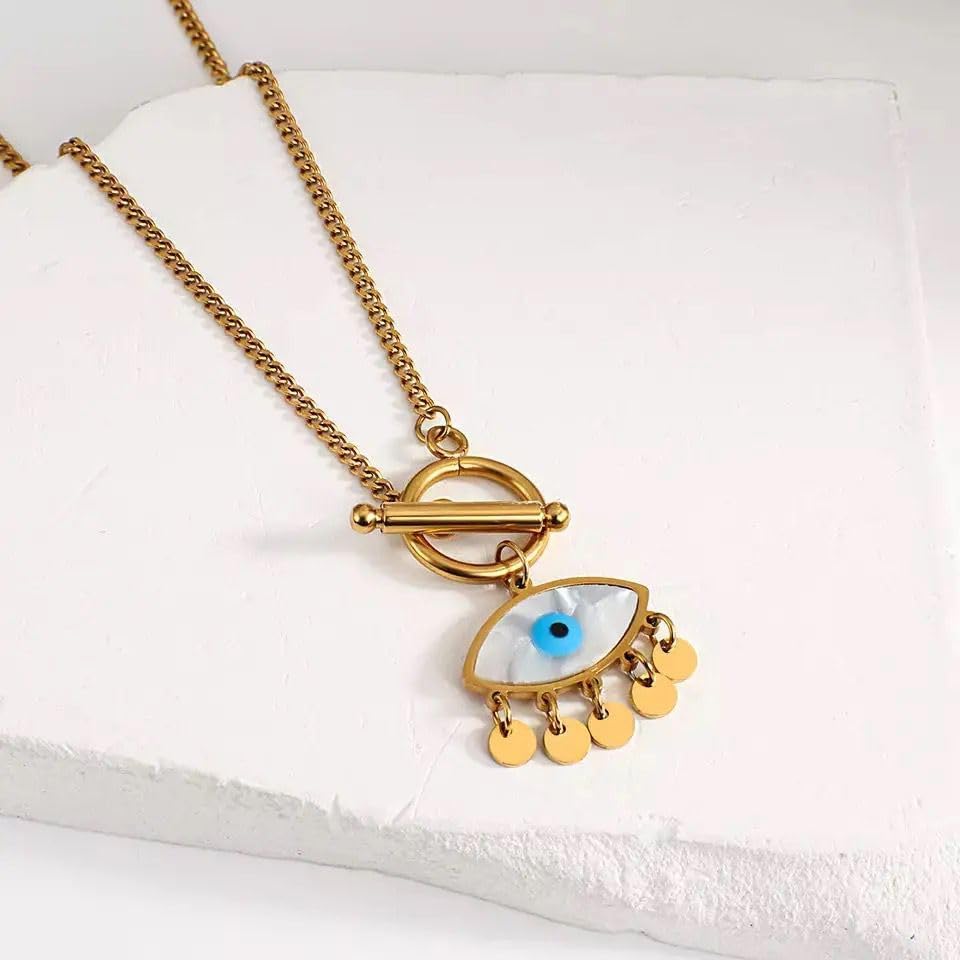Qshop - QSHOP® Wear Our Luxury Jewelry and Light Up in Style with Blue-Eye Opal Evil Eye Pendant 18K Gold Plated Stainless Steel Dainty Chunky Necklace for Women