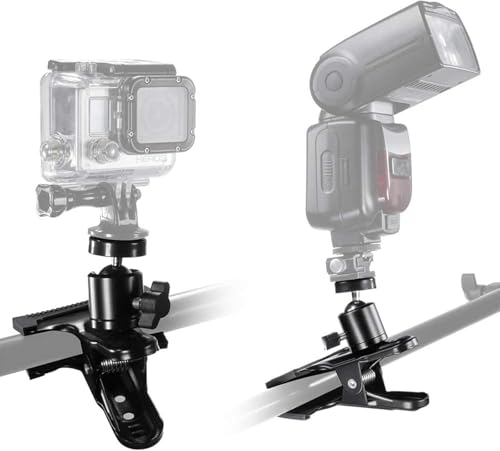 QUEST كويست - مشبك تثبيت من الصلب مرن ومزود بذراع قابلة للتعديل بتصميم رقبة إوزة، حامل متعدد الزوايا متوافق مع معظم كاميرات الحركة وأجهزة التسجيل صغيرة الحجم من كويست (أسود)