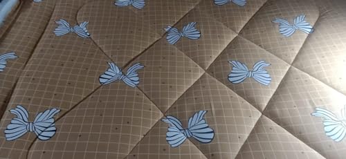 Generic - Quilted Bedspread with Blue Bows, Grid Pattern, Beige