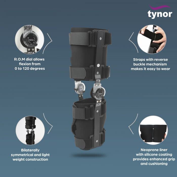 Generic - ار.او.ام دعامة الركبة 56 سم تتحكم وتحد من درجة انثناء مفصل خلال نظام تثبيت متعدد النقاط للسماح بنطاق الحركة أو تجميد أكريلونيتريل بوتادين ستايرين، مقاس واحد