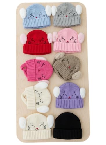 Generic - طاقية شتوي بتصميم أرنب بأذنين متحركين للبنات والأولاد بلون عشوائيمناسب لسن 11سنه، غطاء رأس بنمط منفوش رائع بتصميم أرنب ناعم لشعور بالدفء مناسبة كهدية للحفلات والمناسبات الخاصة