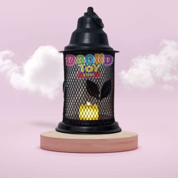Generic - فانوس رمضان معدني شبك - اسود - مضئ