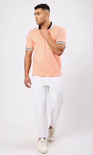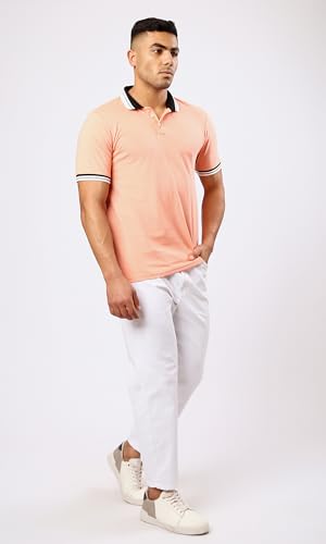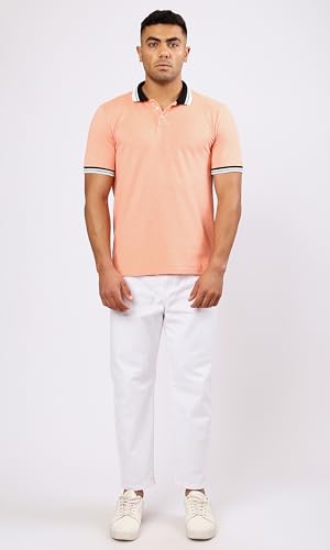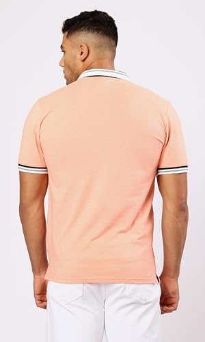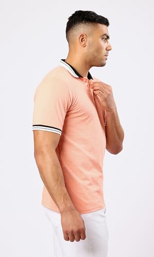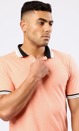 Ravin - قميص بولو بأكمام قصيرة ولون سلمون فاتح مرقش للرجال من ريفين