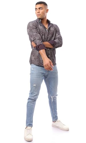 Ravin - Ravin Mens Comfy All Seasons Brown Patterned Shirt Modern
