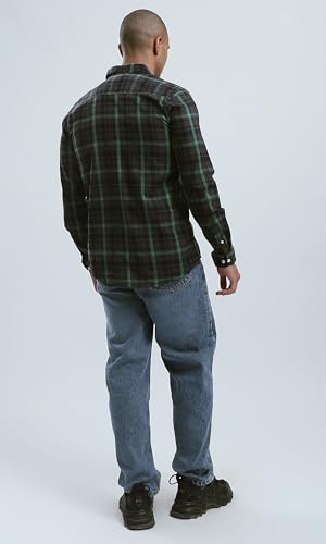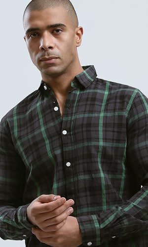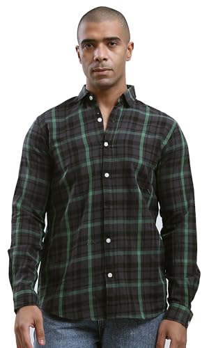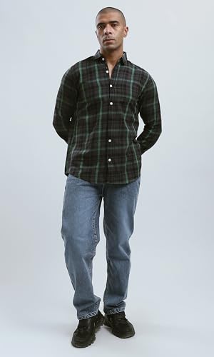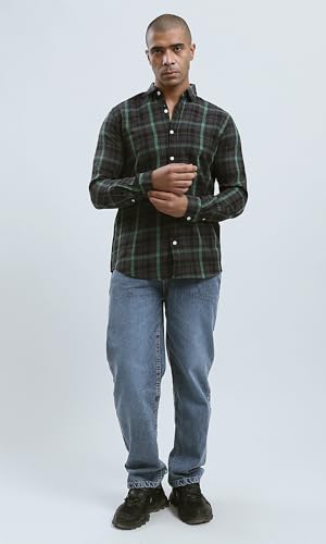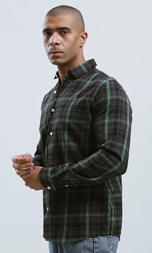 Ravin - قميص من القطن للرجال بنقشة تارتان وياقة مطوية لأسفل من ريفين - أسود وأخضر