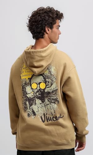 Ravin - Ravin mens Front & Back Print Slip On Hoodie - Biege Men Sweat Shirt