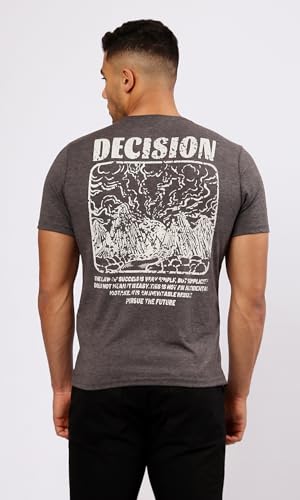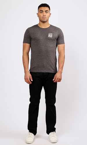 Ravin - Ravin Mens Heather Dark Grey Printed Casual Slip On Tee Modern