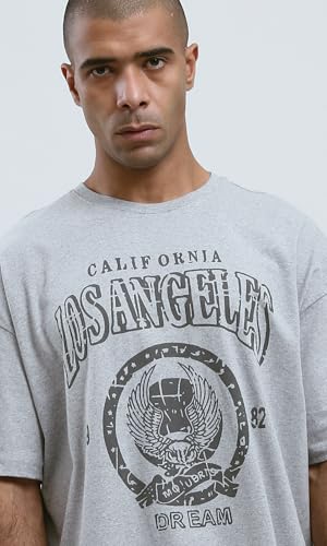 Ravin - Ravin Mens Heather Light Grey Printed Cotton Summer Tee Modern
