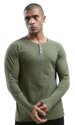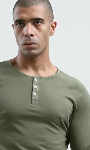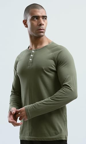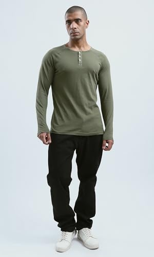 Ravin - Ravin Mens Khaki Buttoned Summer Henley Shirt Modern