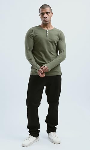 Khaki Buttoned Summer Henley Shirt