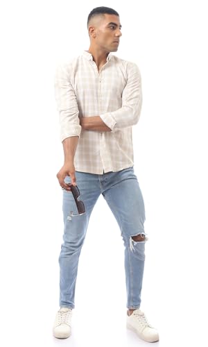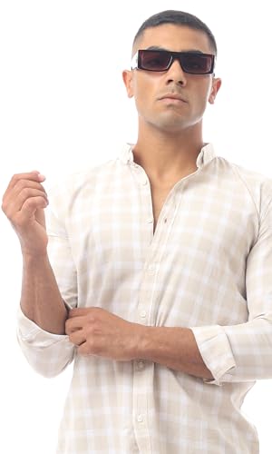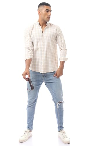 Ravin - قميص عصري بياقة مطوية لأسفل وأزرار للرجال من ريفين، لون بيج فاتح