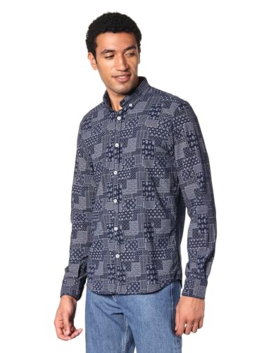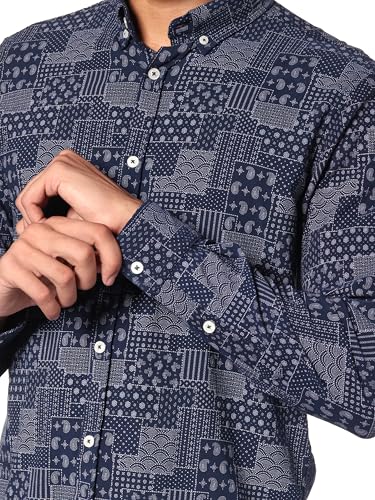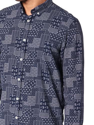 Ravin - Ravin Mens Long Sleeve Navy Blue Patterned Buttoned Shirt Modern