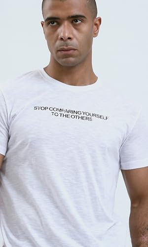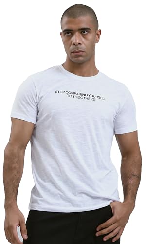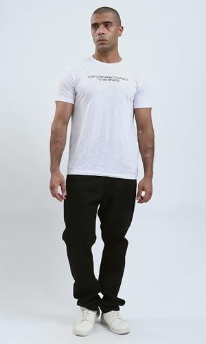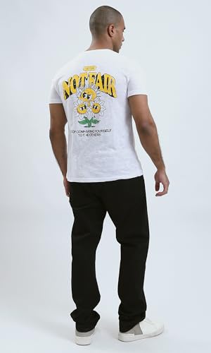Ravin - تيشرت بتصميم عصري بقصة عادية مطبوع عليه عبارة "Not Fair" للرجال من ريفين، لون أبيض منقط