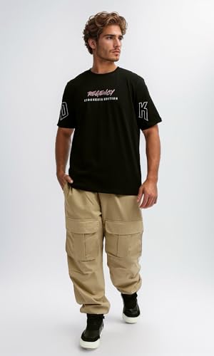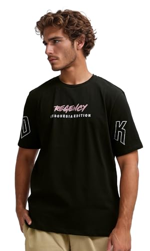 Ravin - تيشرت بتصميم عصري سهل الارتداء مطبوع عليه "Regency" للرجال من ريفين، لون أسود