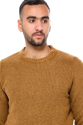Ravin - Ravin mens Ribbed Round Neck Pullover with Long Sleeves - Camel Men Pullover