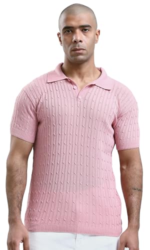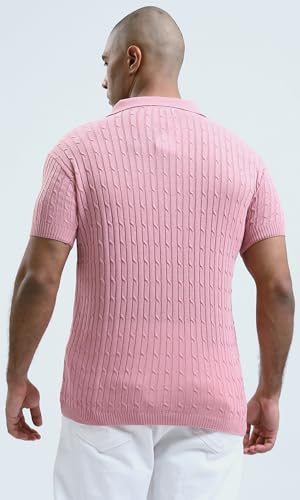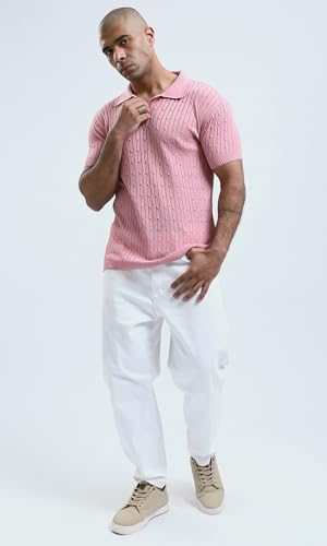 Ravin - قميص بولو بلون وردي سادة بياقة كلاسيكية وتصميم عصري للرجال من ريفين