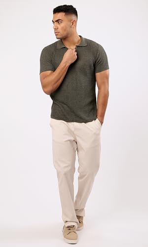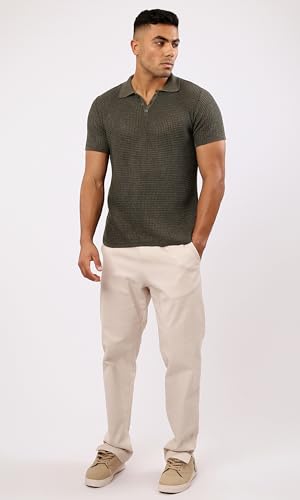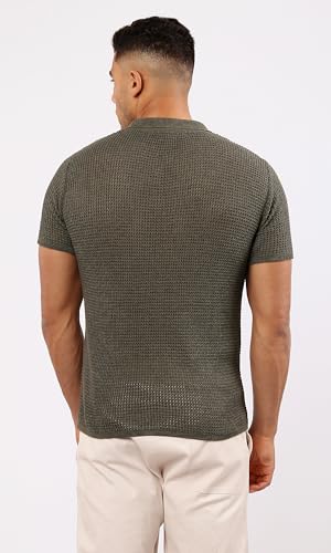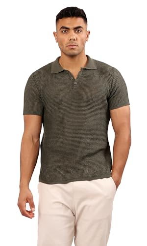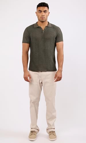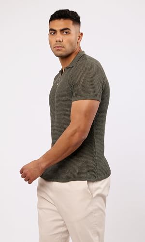 Ravin - Ravin Mens Short Sleeve Shirt Short Sleeves Dark Olive Knitted Polo Shirt