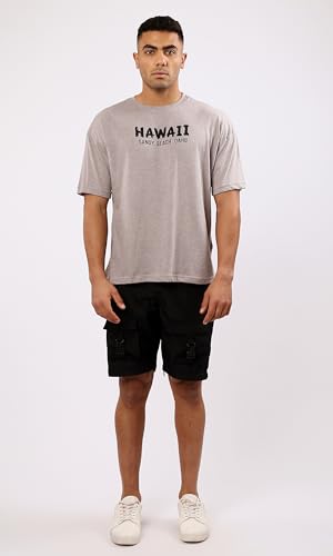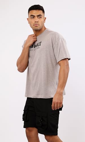 Ravin - Ravin Mens Short Sleeves Heather Taupe Printed Casual Tee Modern