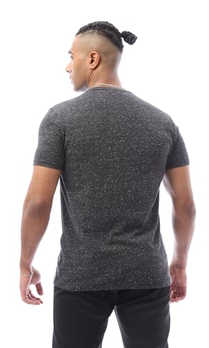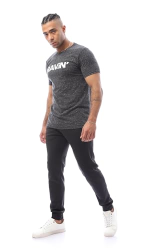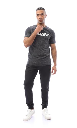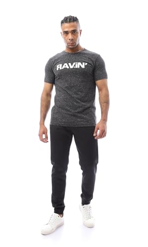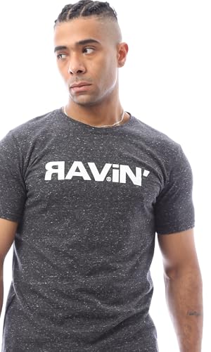 Ravin - ريفين تيشرت رجالي عصري باكمام قصيرة مطبوع بلون فحمي مرقش