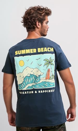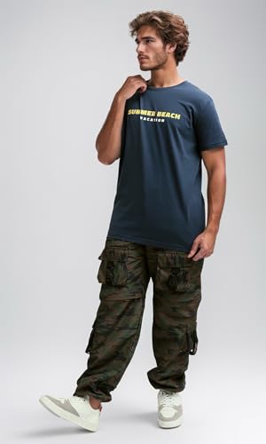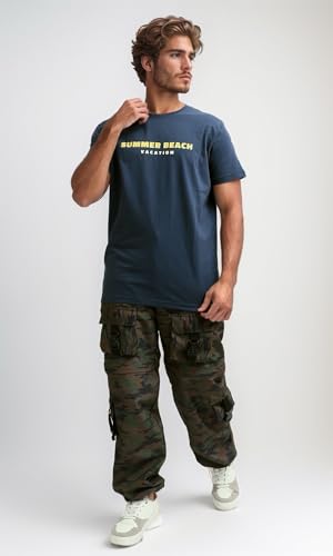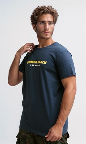 Ravin - Ravin Mens Short Sleeves Printed Navy Casual Shirt Modern