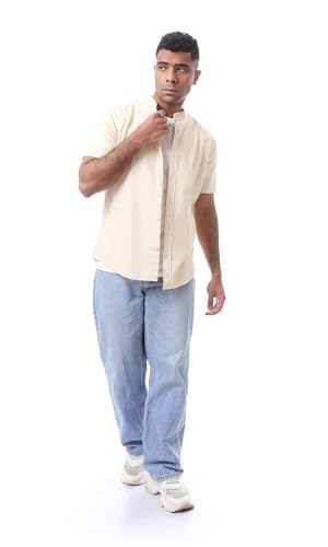 Ravin - Ravin Mens Solid Short Sleeves Beige Basic Tee Modern