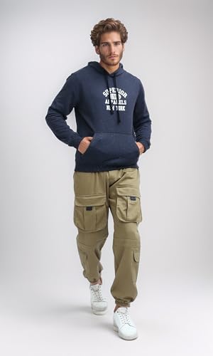 Ravin - ريفين سويت شيرت رجالي بقلنسوة مطبوع عليه "Superior" رمادي داكن سهل الارتداء