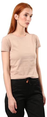 Ravin - Ravin Slip On Beige Solid Regular Fit Tee, Womens, L