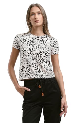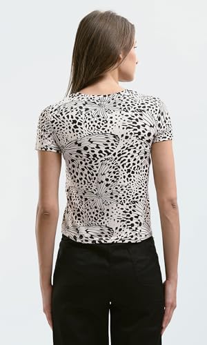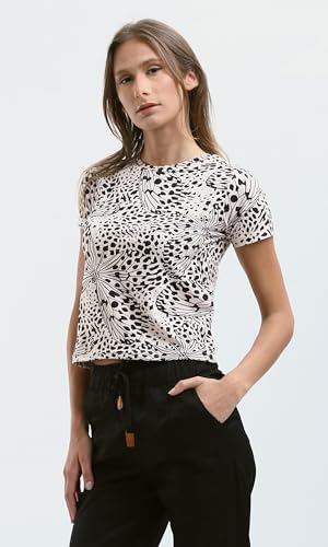 Ravin - Ravin Womens Beige & Black Patterned Short Sleeves Short Tee Modern