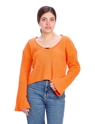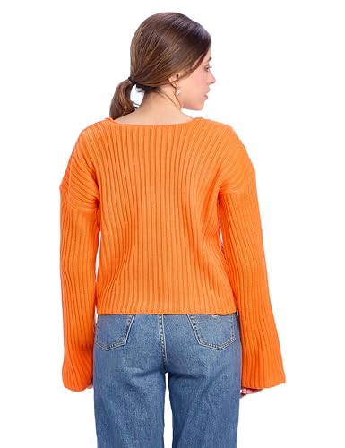 Ravin - Ravin womens Bell Sleeve Orange Cropped Pullover - Orange Women Pullover