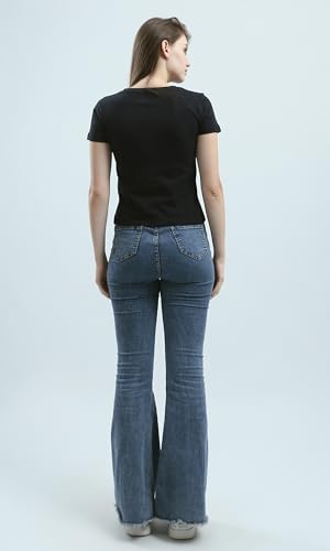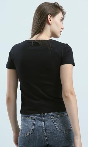Ravin - ريفين تيشرت صيفي عصري مطبوع سهل الارتداء للنساء بلون اسود
