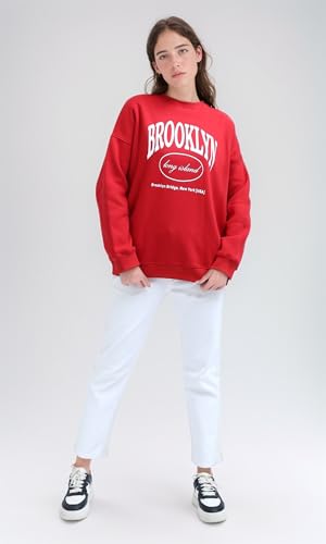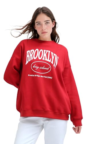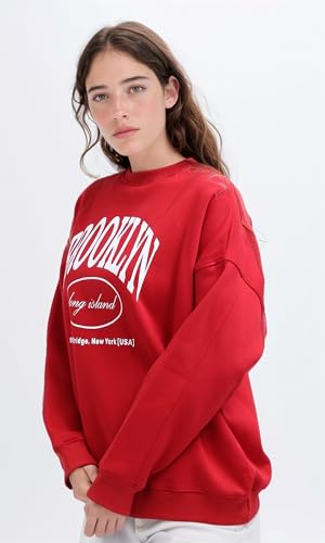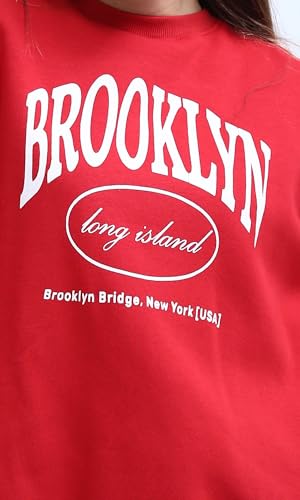 Ravin - Ravin womens "Brooklyn" Printed Red Oversized Sweatshirt Women Sweat Shirt