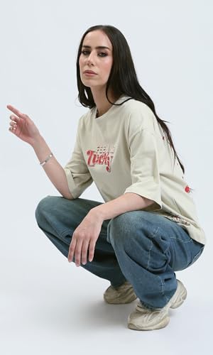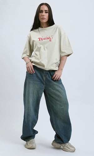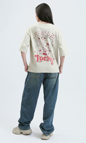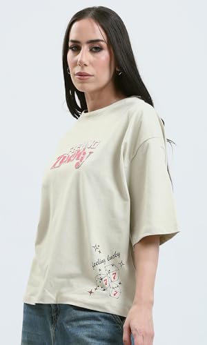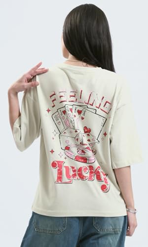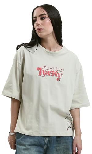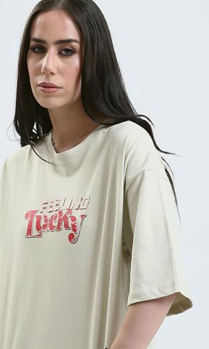 Ravin - تيشرت عصري بقصة مريحة مطبوع عليه "Feeling Lucky" حريمي من ريفين