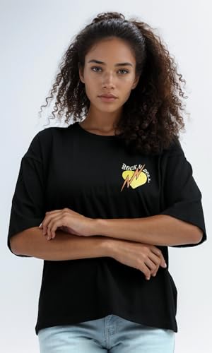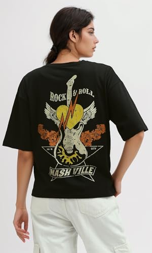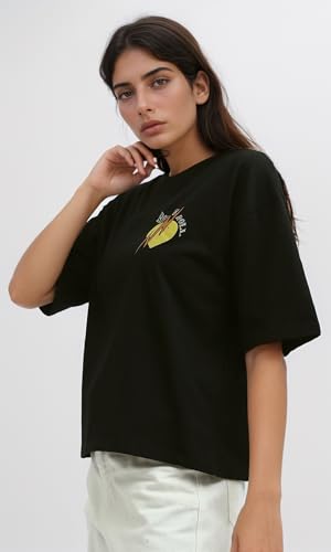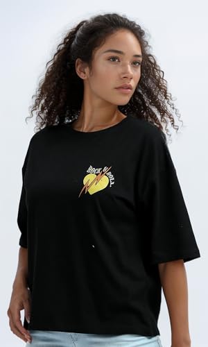 Ravin - Ravin Womens Front And Back Printed Black Tee Modern