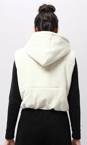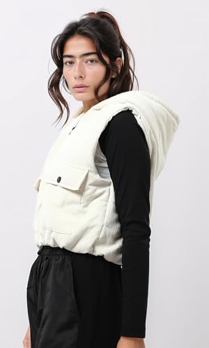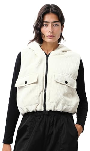 Ravin - Ravin Womens Hooded Neck Zipped Vest - Off-White Women Vest