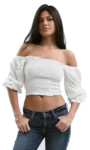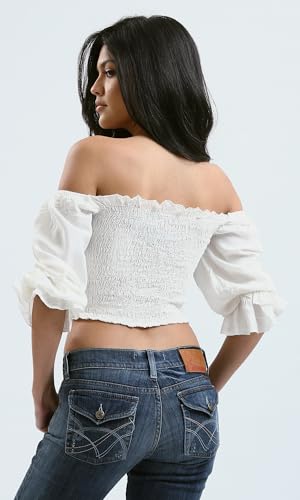 Ravin - Ravin Womens Off-Shoulders Feminine Off-White Elastic Top Modern