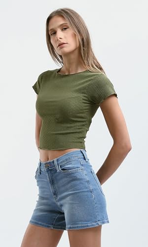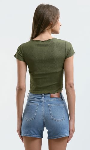 Ravin - Ravin Womens Olive Cropped Top with Lettuce Edge Modern