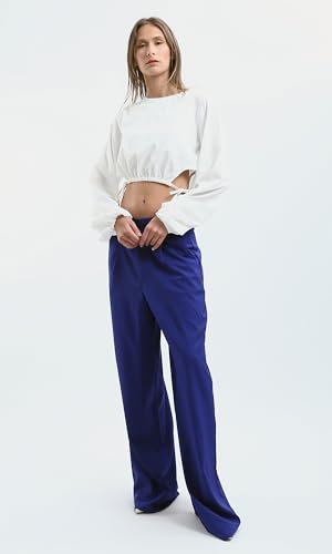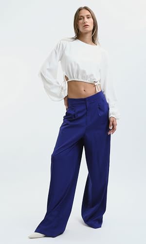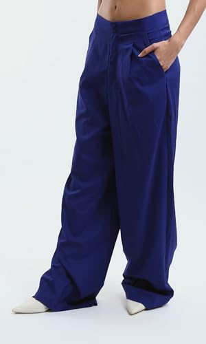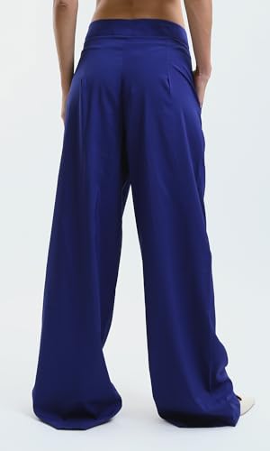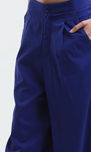 Ravin - Ravin Womens Royal Blue Stylish Wide Leg Pants with Two Buttons Pants