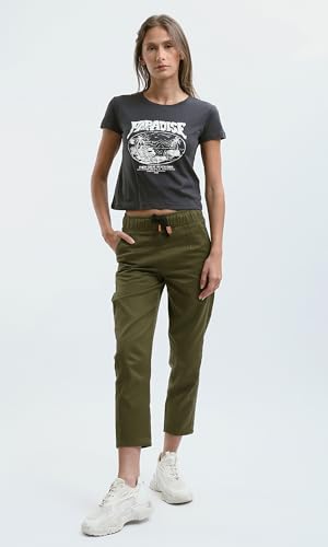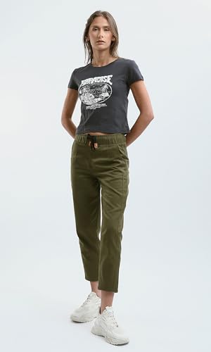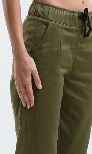 Ravin - بنطلون بلون زيتي سادة بخصر أستك للنساء من ريفين