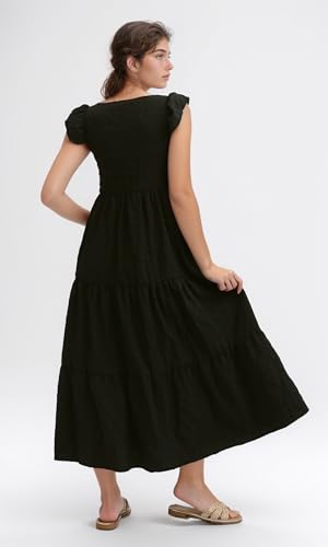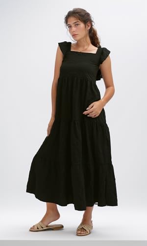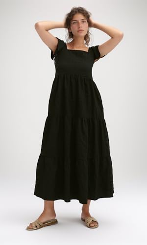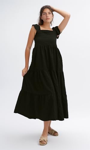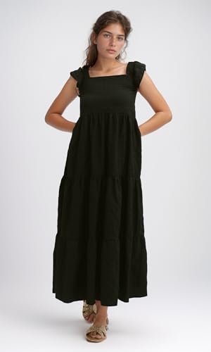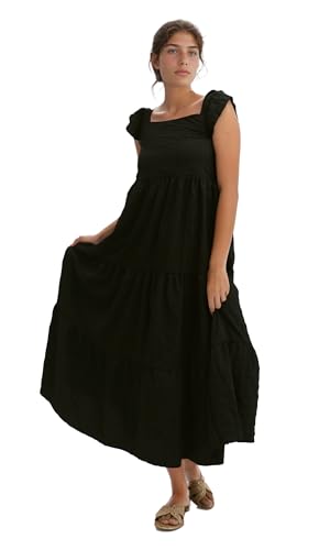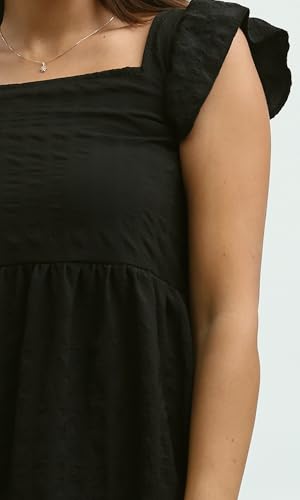 Ravin - Ravin womens Square Neck Black Ruffle Dress Casual Dress