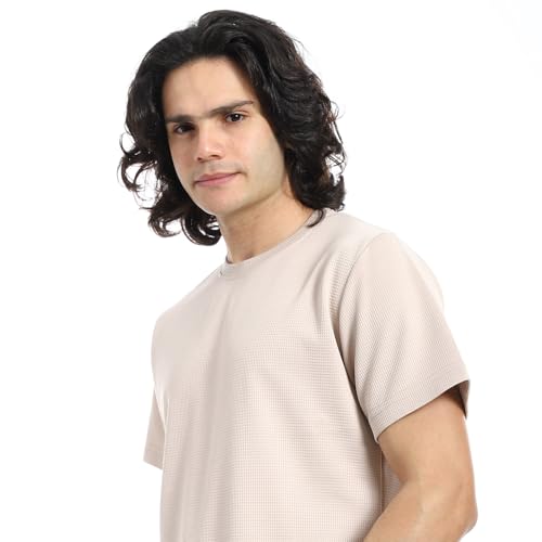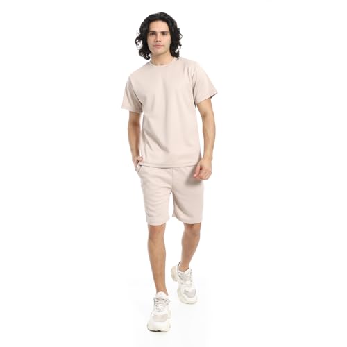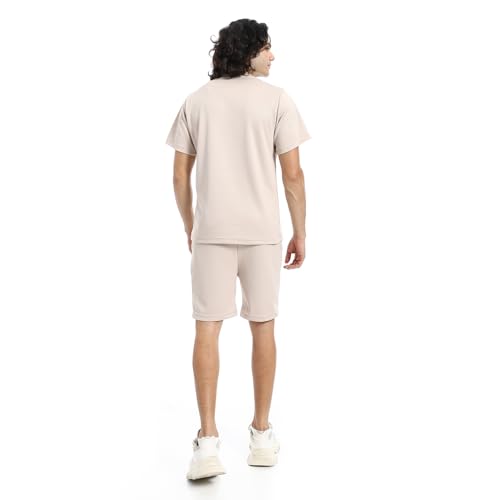 Red Circle - Red Circle Mens Pique Pattern Slip On T-Shirt And Shorts Set - Beige Pique Pattern Slip On T Shirt And Shorts Set
