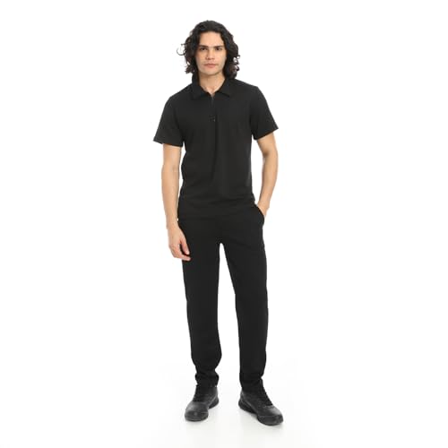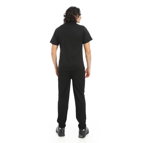Red Circle - Red Circle Mens Turn Down Collar Pique T-Shirt And Pants Set - Black Turn Down Collar Pique T Shirt and Pants Set