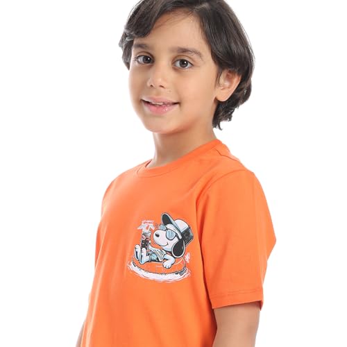 RED COTTON - طقم بيجامة صيفي اكتيف للاولاد من ريد كوتون - تيشرت برتقالي وبنطلون اسود مطبوع بقصة فضفاضة، 12 سنة