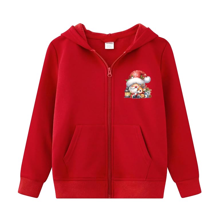 Generic - Red Zip-Up Hoodie with Snowman Christmas Design, Front Pockets, Long Sleeve(9-12Y)