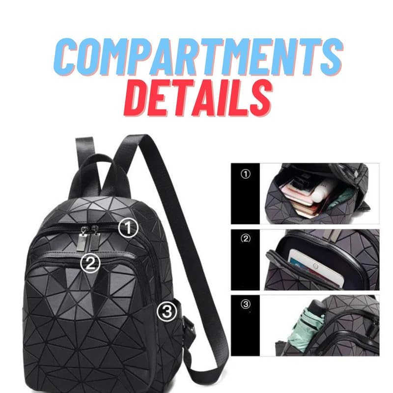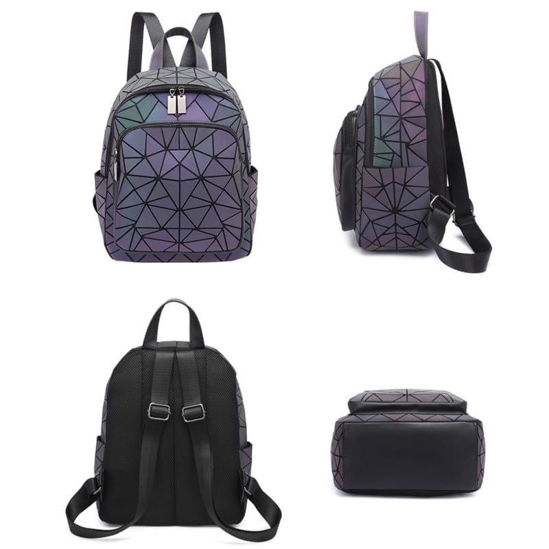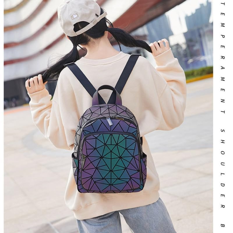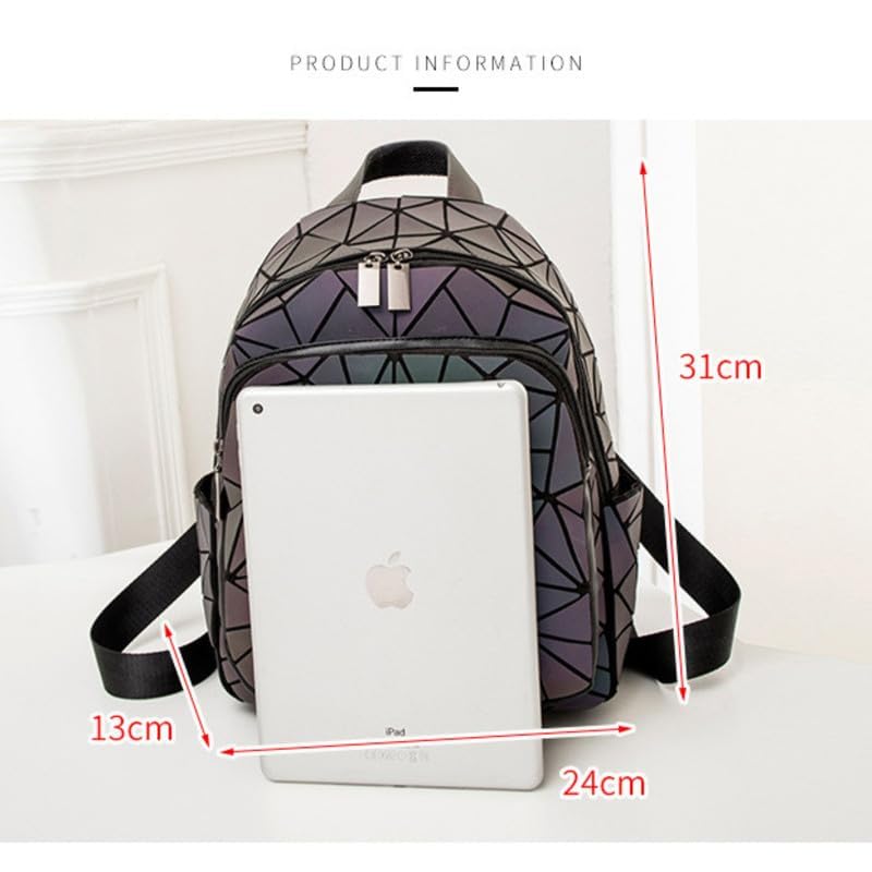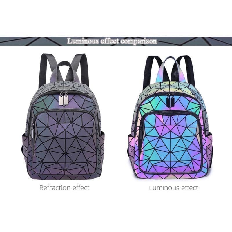 REDHORNS - REDHORNS Geometric Holographic Luminous Backpack Bag For Girls, Ladies, Boys, Unisex Schoolbag Handbag Student Travel Bag Colour Changing Reflective Bag, 12.5X10X5 Inch