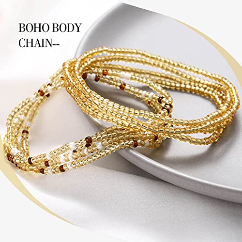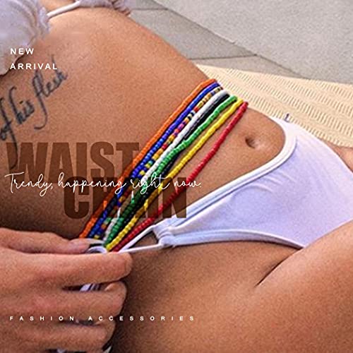 RELBCY - Relbcy Boho Beaded Waist Chain Colorful Elastic Belly Body Chains Rave Party Waist Jewelry Accessories for Women and Girls