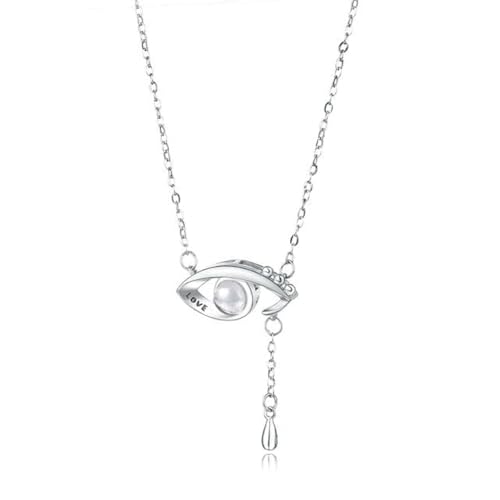 Generic - سلسلة بتصميم عين عتيق من الفضة عيار 925 عبارة «I Love You» بـ100 لغة للأزواج والعشاق 2023 مجوهرات رومانسية عصرية للزوجين فضي للبالغين الجنسين