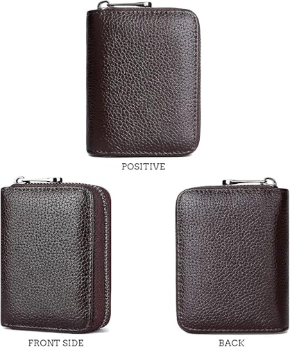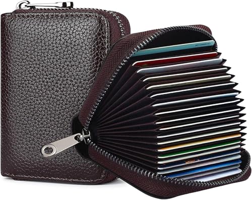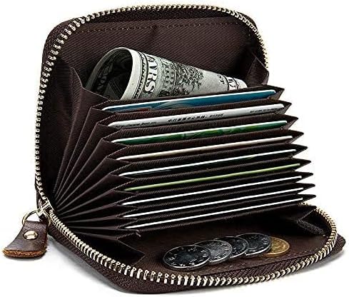 Generic - RFID Credit Card Holder Wallet, Compact Size, Zip Around Accordion Style, Multiple Card Slots, Leather - One Peice (Brown)