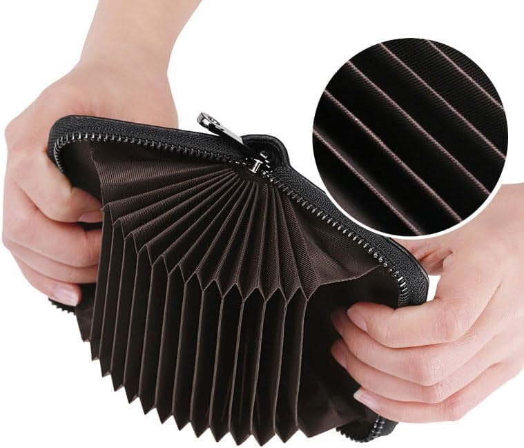 - CAPACITY: Features an accordion-style design with multiple card slots that can hold up to 12 cards while maintaining a slim profile